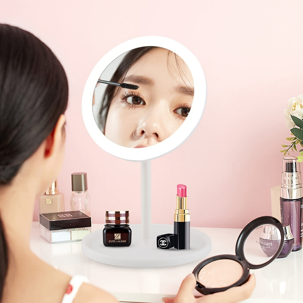 Com luz branca suave, bateria recarregável via USB e design elegante em acabamento polido, ele realça cada detalhe — do delineado perfeito ao glow irresistível da tua pele.